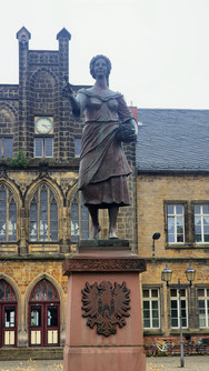 En el centro de la ciudad encontramos un monumento dedicados a personajes importantes en la historia de Quedlinburg. Primero encontramos al monarca Enrique I y su esposa Matilde, quien Tras enviudar, fundo la Abadía de Quedlinburg en su honor junto a otros monasterios y conventos de la región. Dedico su vida y su riqueza a la caridad, lo que la llevó a ser canonizada como Santa Matilde.